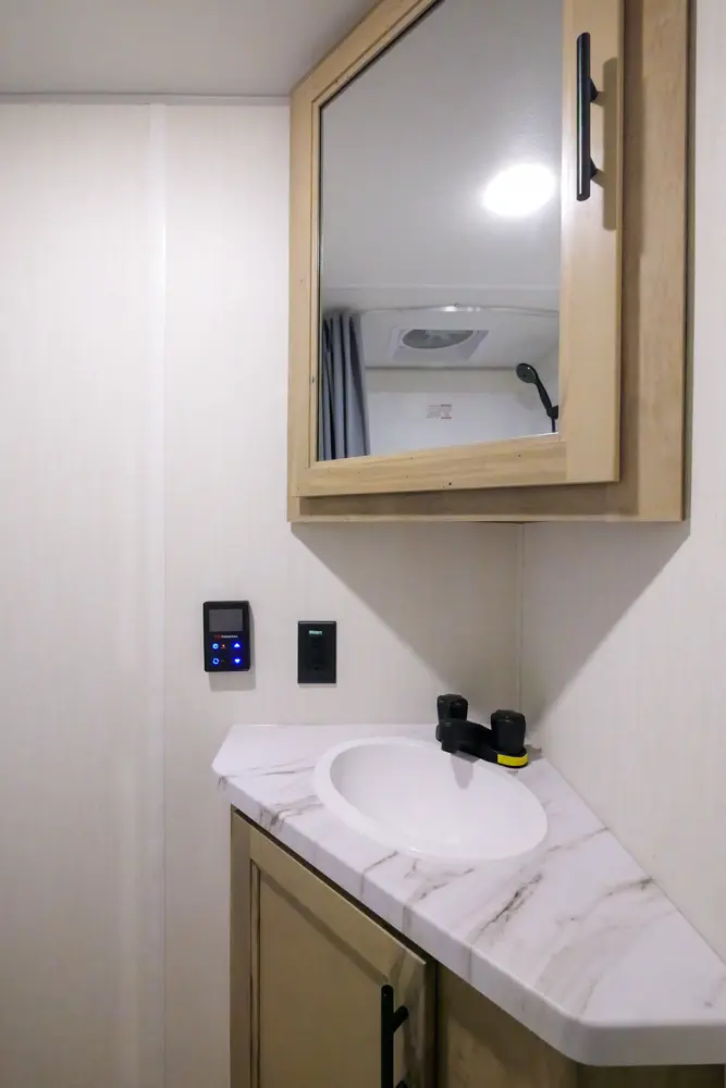 The 17JWBL is the embodiment of the family camper. The large U-shaped dinette offers great seating, full-size pull-out drawers, as well as additional sleeping for two adults. The master queen bed offers comfort, while housing huge under bed storage. A functional modern chef’s kitchen, and bathroom round out the interior of this class leading unit. The exterior under awning space provides ample entertaining space with the exclusive Pup kitchen, LED Power awning, exterior speakers, and TV bracket.